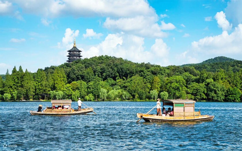- Ngồi thuyền thưởng ngoạn Tây Hồ. Được xem là đẹp và nên thơ nhất trong hơn 36 hồ có cùng tên ở Trung Quốc. Ngắm nhìn Quả sơn, Đoạn kiều, Trường kiều, Tô Đê Bạch Đê, Tam Đàn Ấn Nguyệt và Hoa Cảng Quan Ngư (bên ngoài) gắn liền với những truyền thuyết về Lương Sơn Bá, nhà thơ Lý Bạch, Thanh xà Bạch xà, trà hoa viên.