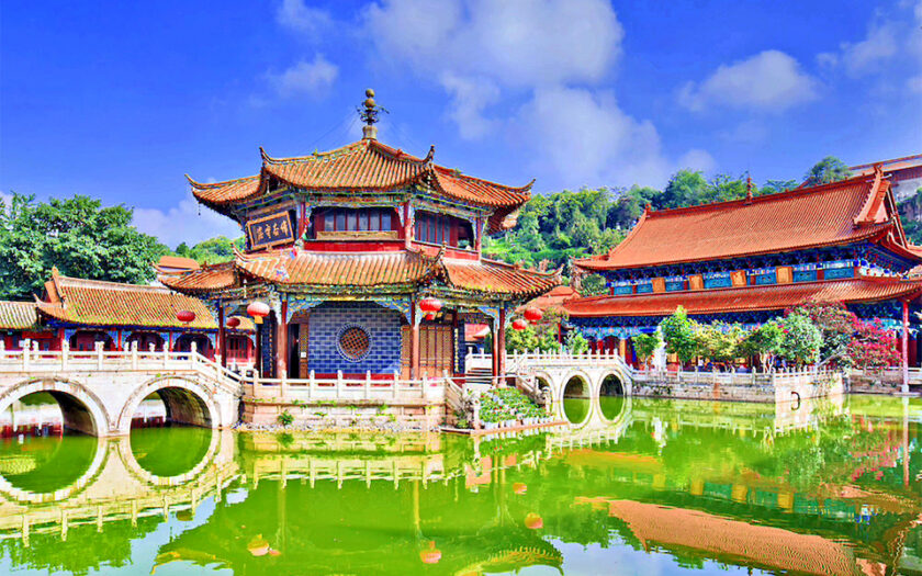 - Chùa đồng Kim Điện – ngôi chùa đồng lớn nhất Côn Minh, là điện đúc bằng đồng nguyên chất lớn nhất và được bảo tồn nguyên vẹn nhất hiện có ở Trung Quốc. Nó được xây dựng lần đầu vào triều đại nhà Minh, trải qua nhiều năm mưa gió, đến nay vẫn giữ được vẻ huy hoàng.