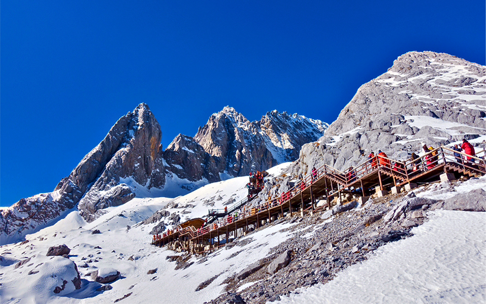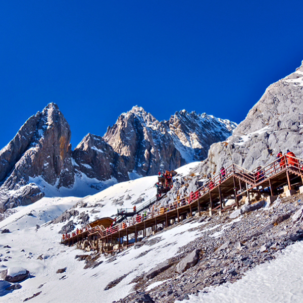 - Núi tuyết Ngọc Long cách trung tâm phố cổ Lệ Giang về phía Bắc, quanh năm tuyết phủ trắng bao phủ một khu vực rộng lớn giống như con rồng lớn nên được gọi là “Ngọc Long”. Nơi đây còn được so sánh với “Thụy Sĩ Á Đông” như rặng Pyrenes (ngọn núi nổi tiếng tại biên giới Pháp và Thụy Sỹ). Đoàn đi cáp treo lớn lên núi với độ cao 4600m và chụp ảnh lưu niệm. Cáp treo Công viên Băng Xuyên.