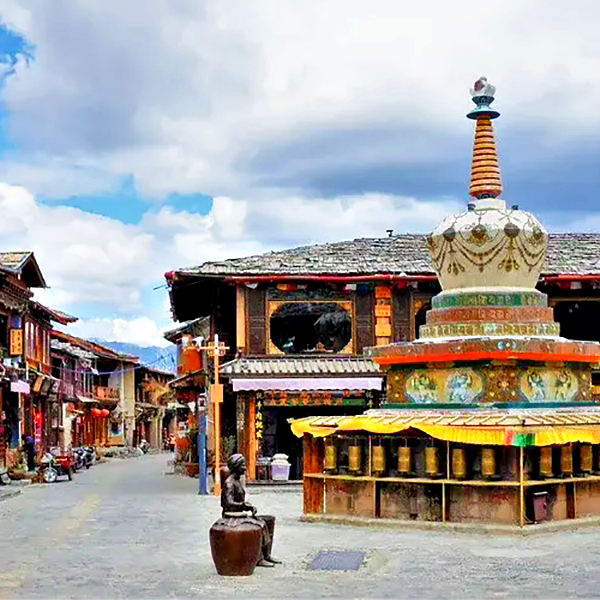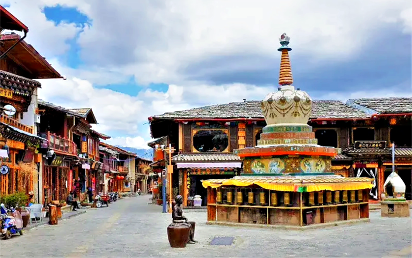 - Tùng Tán Lâm Tự – nơi thờ tự Phật giáo dòng Mật Tông Tây Tạng, nơi đây được coi là hình ảnh thu nhỏ của Cung điện Potala (Tây Tạng) nằm trên độ cao 3200m.Nổi bật với những mái nhọn vàng rực rỡ là một ngôi đền lớn nhất Vân Nam, nơi tập trung những nét văn hóa tiêu biểu của người Tạng, được xây dựng từ năm 1679 bởi vị Lạt ma thứ 5, hiện vẫn được bảo tồn nguyên vẹn.