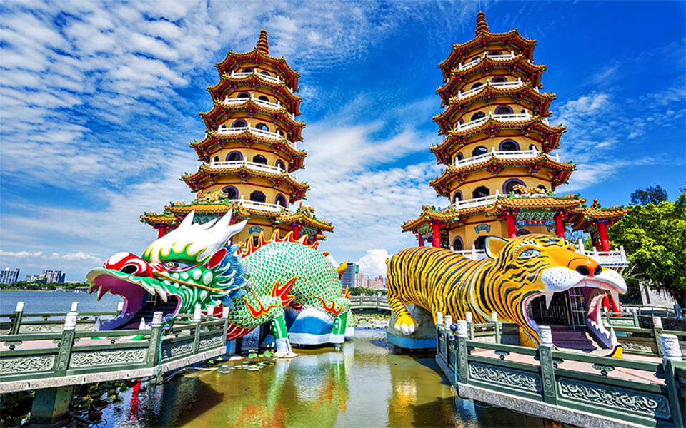 - Đầm Liên Trì: khu vực ven đầm trồng nhiều hoa sen, là nơi danh tiếng được liệt vào tám cảnh nổi tiếng Phượng Sơn thời nhà Thanh, được mệnh danh là “Hương sen mộng Thủy”. Tại đây có Tháp Long Hổ là một trong những ngôi chùa có kiến trúc đẹp nhất ở Đài Loan. Ngôi chùa có hai tòa tháp chính là tháp Long và tháp Hổ, mỗi tháp cao 7 tầng, cửa ra vào được thiết kế độc đáo với một bên là Rồng, một bên là Hổ với ngụ ý vào Rồng ra Hổ tượng trưng cho cát tường, thịnh vượng và may mắn. Xuân Thu Các chỉ cách Tháp Long Hổ khoảng 700m, là nơi thờ mẹ Quan Âm Nam Hải. Đến Xuân Thu Các, du khách sẽ được chiêm ngưỡng tượng Quan Âm Bồ Tát đồ sộ đang cưỡi con rồng khổng lồ. Bức tượng này lấy cảm hứng từ truyền thuyết rằng Phật Bà Quan Âm thường hiện ra trên những đám mây.