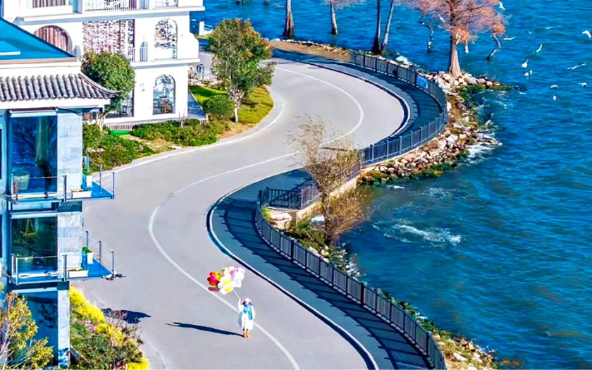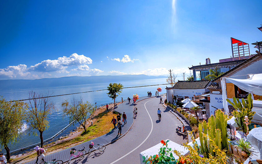 Một nơi không thể không nhắc tới khi đến đây đó chính là cung đường chữ S tuyệt đẹp với một bên là những tòa nhà với lối kiến trúc đặc biệt và một bên là hồ nước mênh mông, mặt hồ gợn sóng theo từng cơn gió đong đưa. Cung đường quanh co, uốn lượn bên Hồ Nhĩ Hải, đến đây bạn có thể nhẹ nhàng rảo bước, đón hoàng hôn lãng mạn, hoặc thong dong trên chiếc xe đạp đón từng cơn gió luồn qua mái tóc.