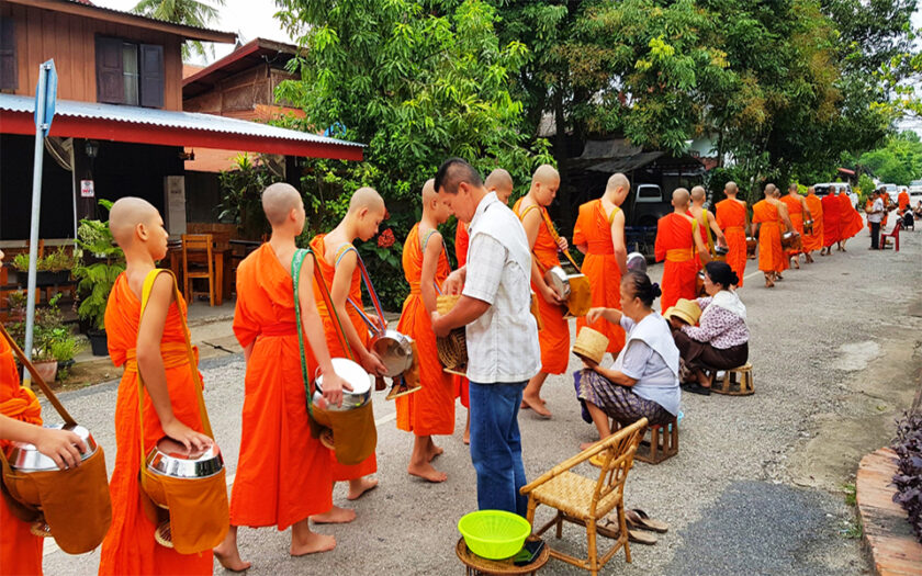 - Tham dự lễ Tak Bat (Lễ khất thực)