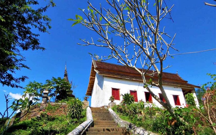 - Chùa Chomphet trên đỉnh Phousi – ngắm toàn cảnh cố đô nằm bên ngã ba sông Mekong và sông Nậm Khan.