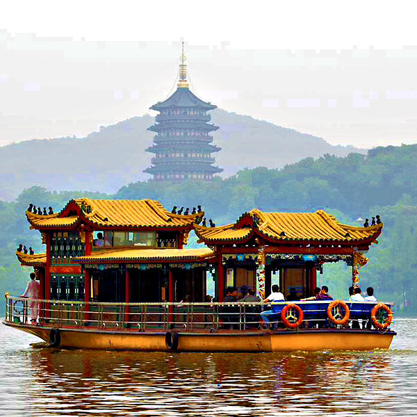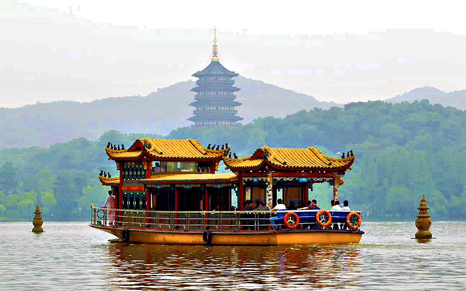 - Ngồi thuyền thưởng ngoạn Tây Hồ. Được xem là đẹp và nên thơ nhất trong hơn 36 hồ có cùng tên ở Trung Quốc. Ngắm nhìn Quả sơn, Đoạn kiều, Trường kiều, Tô Đê Bạch Đê, Tam Đàn Ấn Nguyệt và Hoa Cảng Quan Ngư (bên ngoài) gắn liền với những truyền thuyết về Lương Sơn Bá Chúc Anh Đài, Lý Bạch, Thanh xà – Bạch xà.