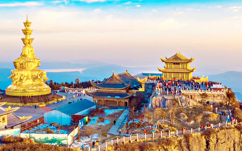 - Nga My Kim Đỉnh, điểm cuối cùng và cao nhất của núi Nga My – tức Kim Đỉnh. Kim đỉnh nằm trên một vùng núi gọi là Vạn Phật Đỉnh gồm có nhiều chùa và thắng cảnh khác nhau. Vào đời nhà Thanh sau khi thi nhân Đàm Chung Nhạc du ngoạn ở núi Nga My ông đã hết mực ca ngợi và nêu lên 10 cảnh đẹp chính của núi, nào là Kim Đỉnh Tường Quang, Tượng Trì Nguyệt Dạ, Bạch Thủy Thu Phong (bao gồm xe du lịch và cáp treo)